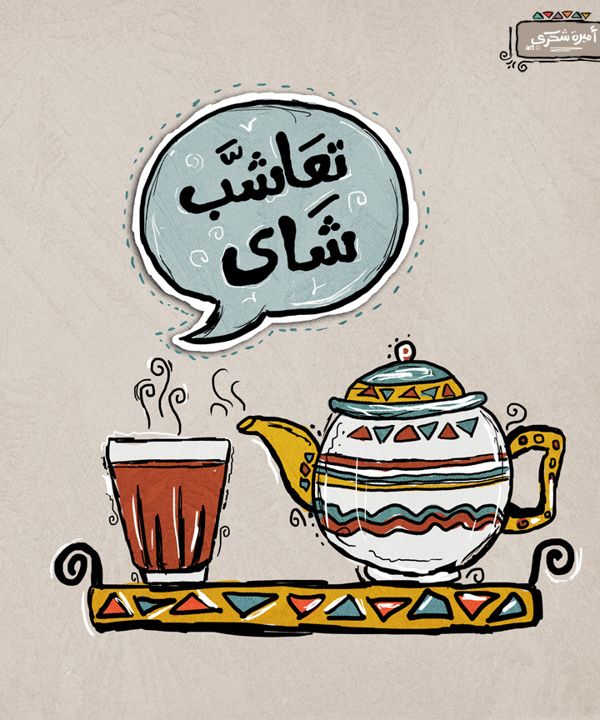 ( شـاي )画像はデザイナーによるエジプト方言の「お茶を飲みにおいで」。
